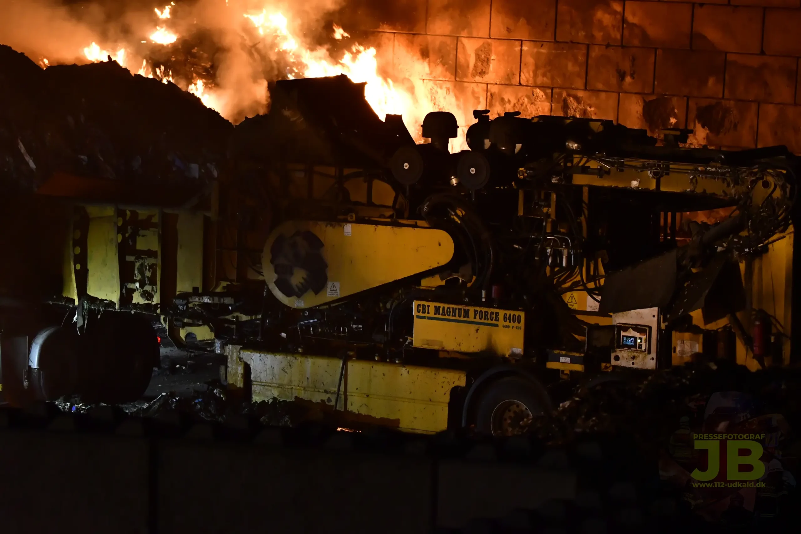 Branden startede i en affaldsbunken indeholdende en stor mængde plast og gummi hvilket gav en høj og vedvarende varme. Strålevarmen fik hurtigt sat gang i bunken ved siden af og beredskabet blev en del mere presset.