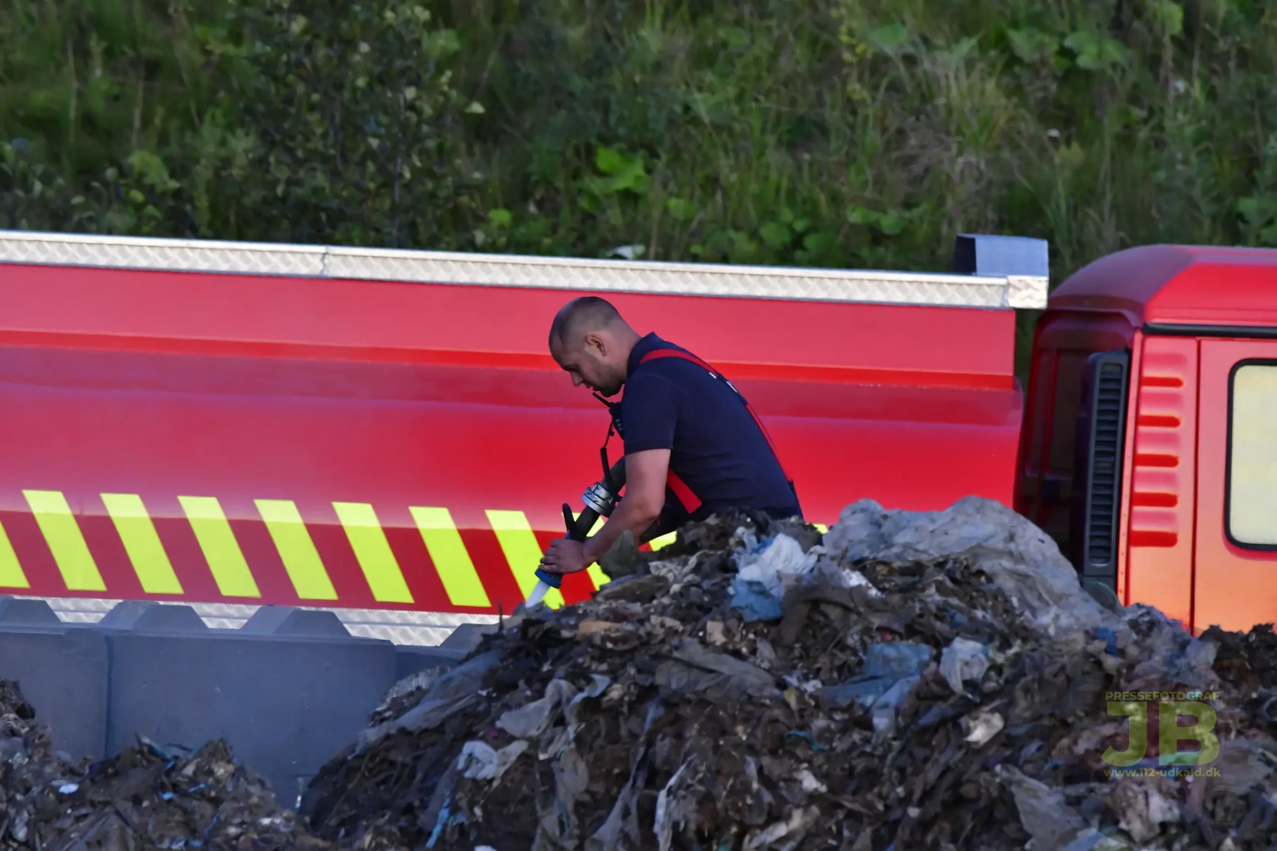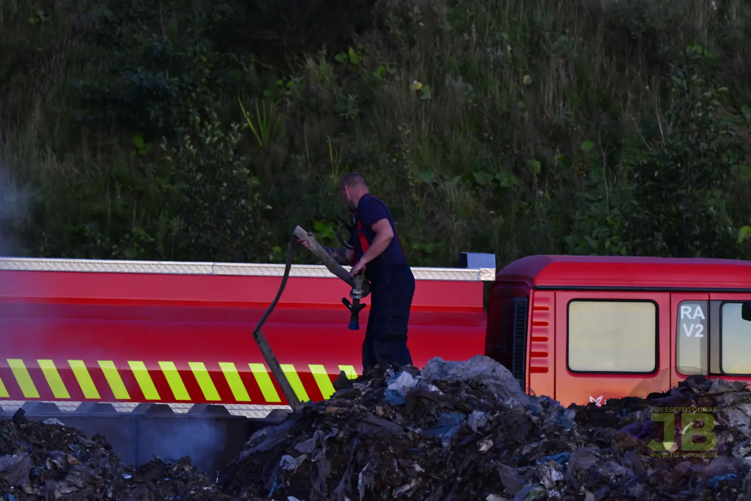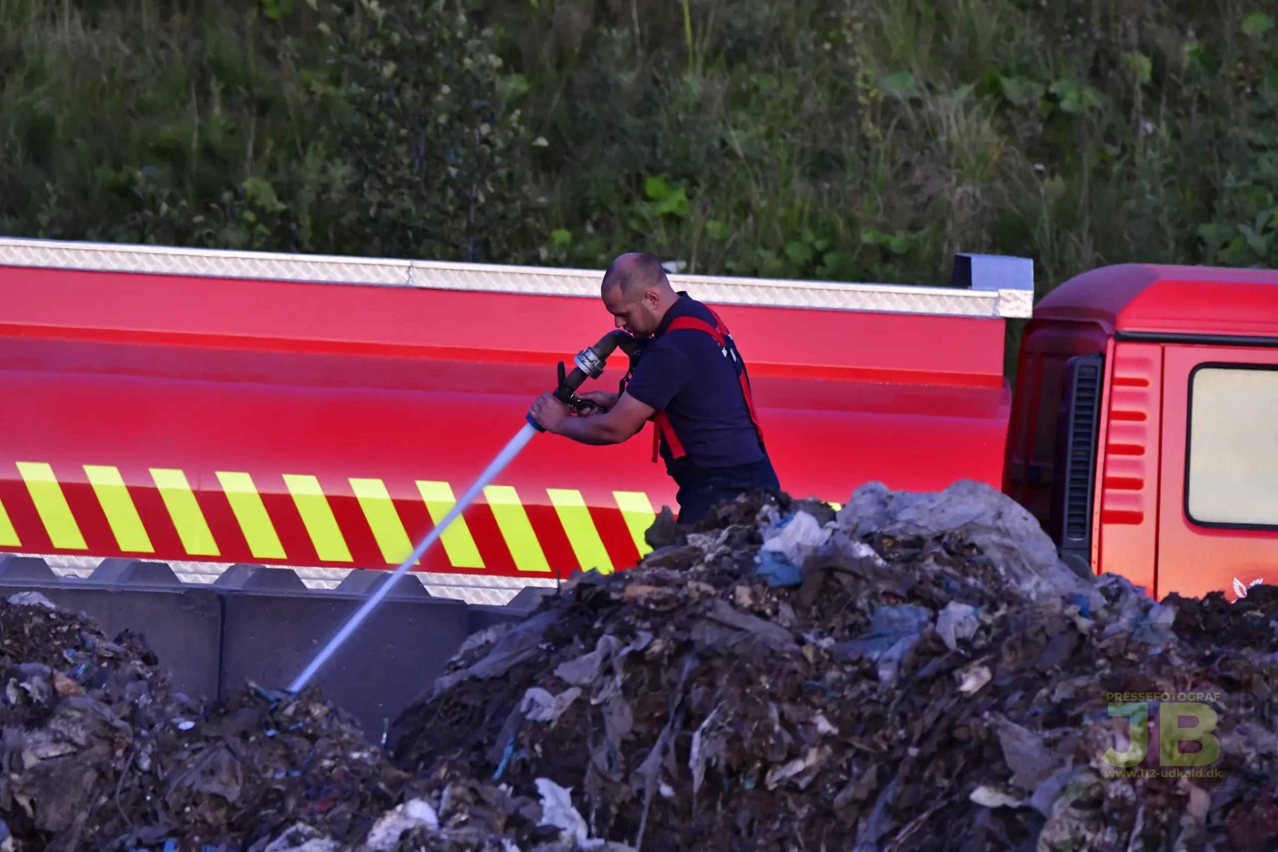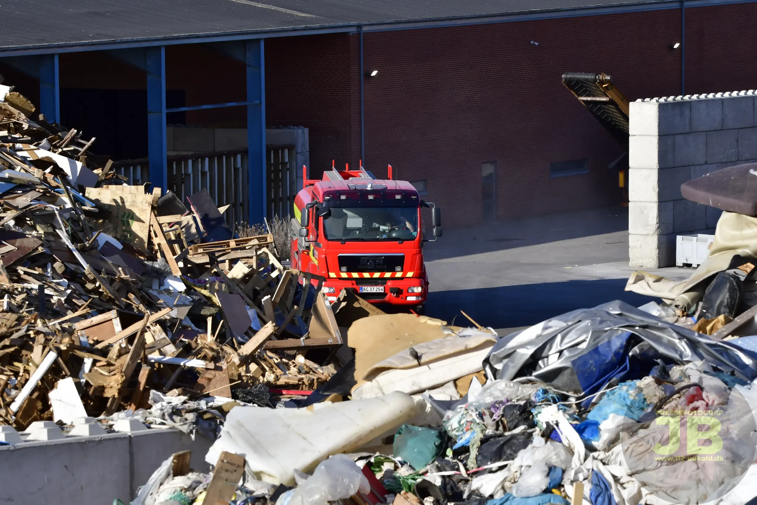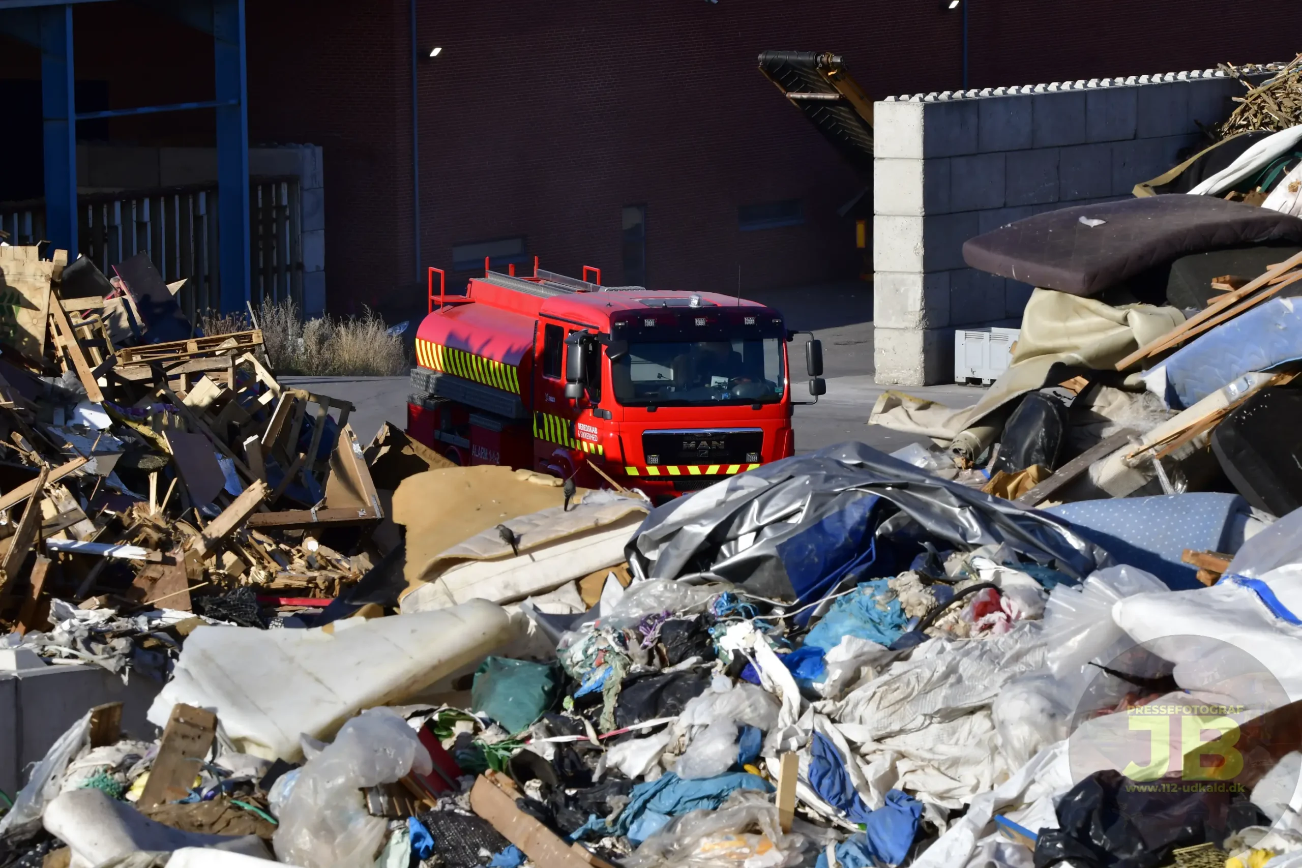 Fredag d. 15. August 2025 brød et større affaldsoplag på Hadstenvej, i brand.